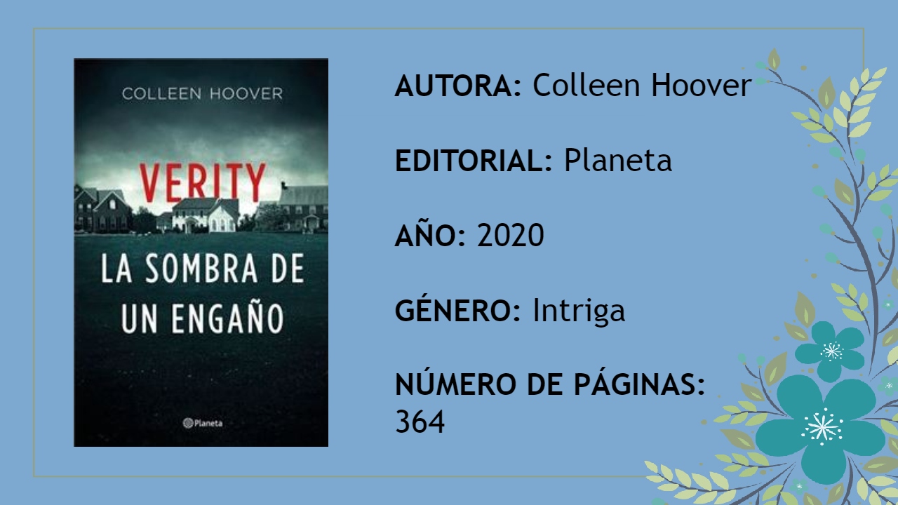 Verity. La sombra de un engaño es una novela entretenida y de lectura fácil y rápida, ya que sus capítulos cortos te dejan siempre con ganas de más. Es uno de esos libros que cada vez que acabas de leer un capítulo piensas bueno, uno más a ver que pasa, que total es cortito. Y así una y otra vez, hasta que, cuando te das cuenta, te has leído ya medio libro del tirón.